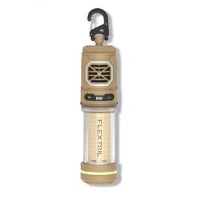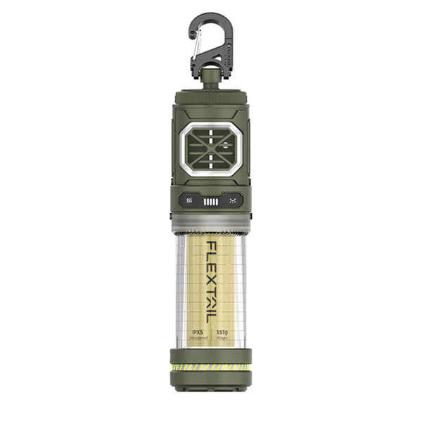 Фумігатор-ліхтар Flextail живиться від вбудованого акумулятора (17,5 Вт·год) із зарядним портом USB-C та підходить для експлуатації в різних погодних умовах. Герметичність корпусу відповідно до стандарту IPX5 гарантує захист внутрішньої електроніки від вологи у разі попадання конструкції під струмінь води з будь-якого напрямку.